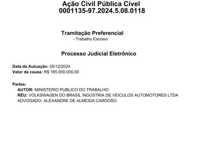 Die brasilianische Bundesstaatsanwaltschaft hat im Mai 2022 ein Ermittlungsverfahren gegen Volkwagen im Fall der von VW in den Jahren 1974 bis 1983 betriebenen Rinderzuchtfarm Rio Cristalino im brasilianischen Bundesstaat Pará eingeleitet. Dabei geht es um die Ausbeutung von Sklavenarbeit, Menschenhandel und systematische Menschenrechtverletzungen.