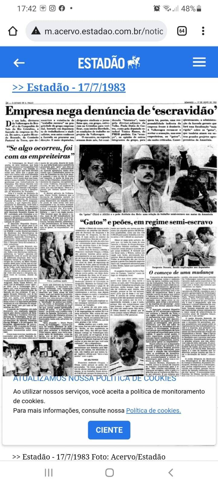 Wir haben bereits in den 1980-er Jahren die sklavenähnlichen Arbeitsbedingungen auf der VW-Rinderzuchtfarm publik gemacht. (siehe BrasilienNachrichten Nr.166/2022). Nachfolgend eine Chronologie der Ereignisse in Brasilien, ergänzt mit Aktivitäten durch die Brasilieninitiative in Deutschland.